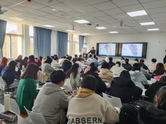 徐建平博士主讲内容是国家领土法。徐博士从国家领土的重大意义角度出发,有序地引发学生的学习兴趣。在内容上,徐老师分层讲解,详略兼顾,重点突出,事例生动,并运用了丰富的地图帮助学生理解知识难点和重点。徐老师在思政内容上突出中国立场和国际视野,增强了学生的爱国情怀。课堂上,学生们完全沉浸在浓厚的学习氛围之中,教学效果良好。参加听课教师都专心听讲,认真记录,总结经验。