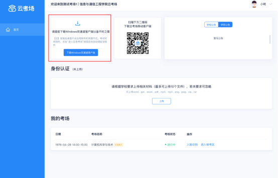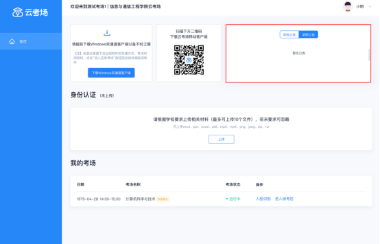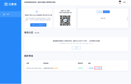 a. 查看考场的日期时间、考场名称等信息,若有疑问及时跟学校管理员取得联系