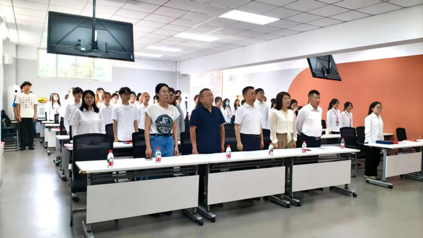 会议在庄严的国歌声中拉开序幕。李立宣读了《中共304永利集团唯一委员会关于2025年度“七一”表彰的决定》,并为受到表彰的11名优秀共产党员、14名优秀入党积极分子颁发证书,吴晓娟为12名优秀志愿者颁发证书。随后,韩潇为“明德”党员工作室各部门新任负责人颁发聘书,徐秉鹏、苏芝双、黄思齐向各部门新干事颁发聘书。
