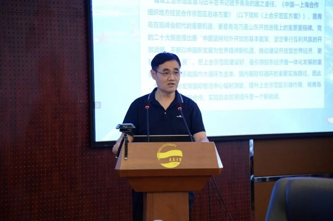 山东科技大学文法学院院长孙法柏的演讲主题为《发挥国际物流中心枢纽效能,提升上合示范区引领作用》。孙法柏首先从多式联运物流枢纽建设、国际物流合作、通关便利化三个方面介绍了上合示范区的基本情况。其次,孙法柏指出目前存在的五个主要问题:物流中心地位不高,功能发挥呈现碎片化;发展思路多元化,精准施策力度不够;发展优势突出,但制约瓶颈较多;物流渠道不畅,司法保障亟待完善;国内各地竞相补贴,货源争夺降低物流效率。最后,孙法柏针对上述问题提出六项建议:推动建立联席会议制度;支持海关特殊监管区域申建;推行出入境签证便利化试点;强化上合示范区大通道能力;发掘新机遇探索新模式;发掘新机遇探索新模式。
