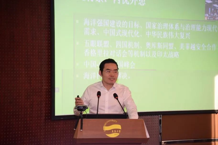 中国海洋法学会会长高之国的演讲主题为《上海合作组织与国际海洋法》。高之国首先介绍了上合组织的基本情况,并从治理和发展的角度分析了内陆国与国际海洋法的关系,聚焦于当前上合组织成员国的海洋法实践,提出上合组织目前对于内陆国在国际法、海洋法公约下享有的权利和义务的重视度和研究力度均有待提高。为拓展、深化、完善上海合作组织的合作方向、合作领域、合作内容,高之国针对上合组织与区域海洋法发展提出了若干建设性建议。高之国法官并向青岛大学赠书,校长夏东伟接受赠书。