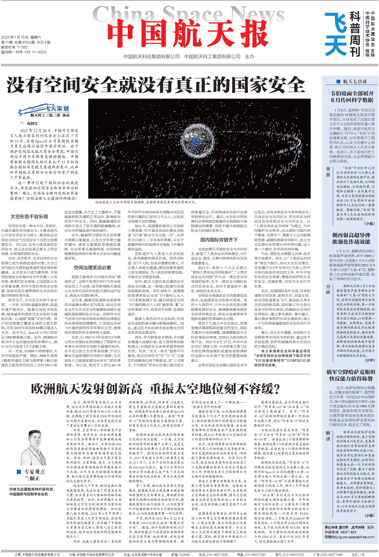 2022年1月15日,永利郑斌航空与空间法研究所副所长、中国国际法学会理事张超汉撰写的评论性文章《没有空间安全,就没有真正的国家安全》在国内航天领域权威性媒体《中国航天报》头版、头条刊发。