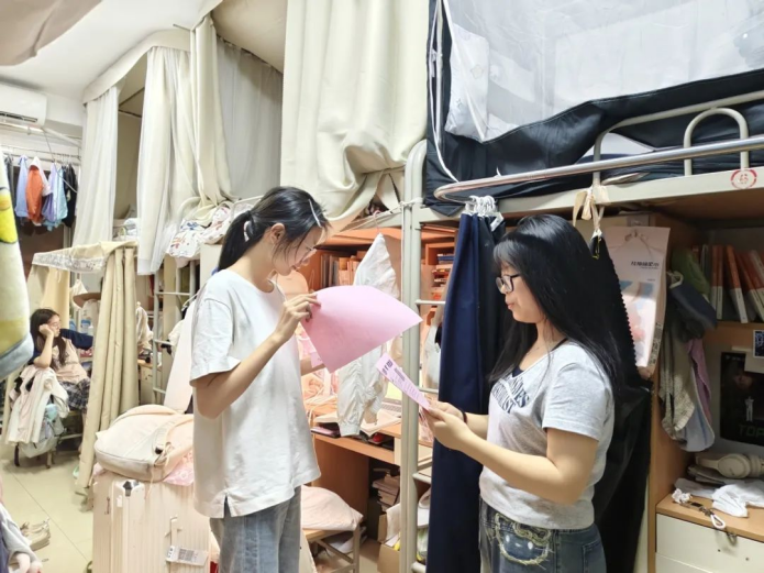 活动伊始,志愿者们分组前往各学生宿舍展开宣讲。他们聚焦校园生活重点讲解了校园借贷风险防范、个人信息保护、宿舍财物归属界定等法律要点,结合真实案例解析借贷合同陷阱、网络隐私泄露等常见问题,提醒同学们提高法律意识,学会用法律武器保护自身权益。志愿者们还分发并粘贴了民法典宣传单,通过系统阐述民法典中的具体法律条文展示民法典对学生权益的保障作用,呼吁同学们以知法明责的自觉、循法而行的行动,共同构建法治护航的校园生活新范式,让民法典真正成为青年成长路上的权益铠甲。