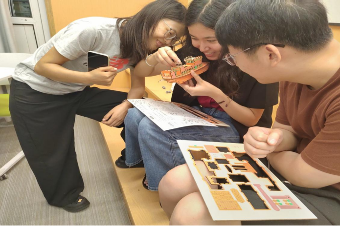 实践环节中,活动设置石膏娃娃彩绘与南湖红船拼图两大主题项目。同学协同合作,绘制组画笔在素白石膏上精心勾勒;拼图组对照历史资料,细致拼接红船模型零件,现场气氛温馨,不少同学在制作过程中自发分享党史学习、学业或生活的感悟。