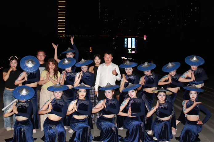 在比赛筹备阶段,学院领导高度重视,精心筹备,为团队提供了坚实的组织保障与资源支持。舞蹈作品《陶醉了》以云南“花腰傣”文化为根基,在保留最原始傣族文化的基础上加以创新改编,通过标志性的“三道弯”和“一顺边”的体态与流畅细腻的手势,配合半遮面斗笠、银腰带、孔雀翎毛装饰等富有非遗特色的道具,将傣族“水文化”的灵动感与现代审美完美融合。