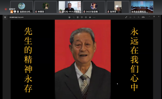 在线上嘉宾的追思发言阶段,中国政法大学原校长、中国国际私法学会会长黄进教授,中国国际私法学会副会长、中南财经政法大学副校长刘仁山教授,中山大学谢石松教授,中山大学慕亚平教授和304永利集团唯一张学安教授分别进行了追思发言。