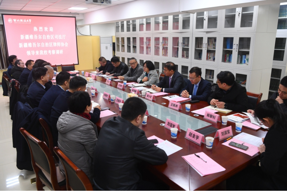 2月16日上午,新疆维吾尔自治区司法厅党委委员、副厅长,新疆律师行业党委书记庄淑君带队来校考察调研、洽谈合作,陕西省律师协会会长韩永安,永利校长范九利,副校长王健、孙昊亮,涉外法治研究中心执行主任王瀚等陪同调研。双方在学校丝绸之路区域合作与法律研究院座谈交流,并举行合作签约仪式,王健主持会议。