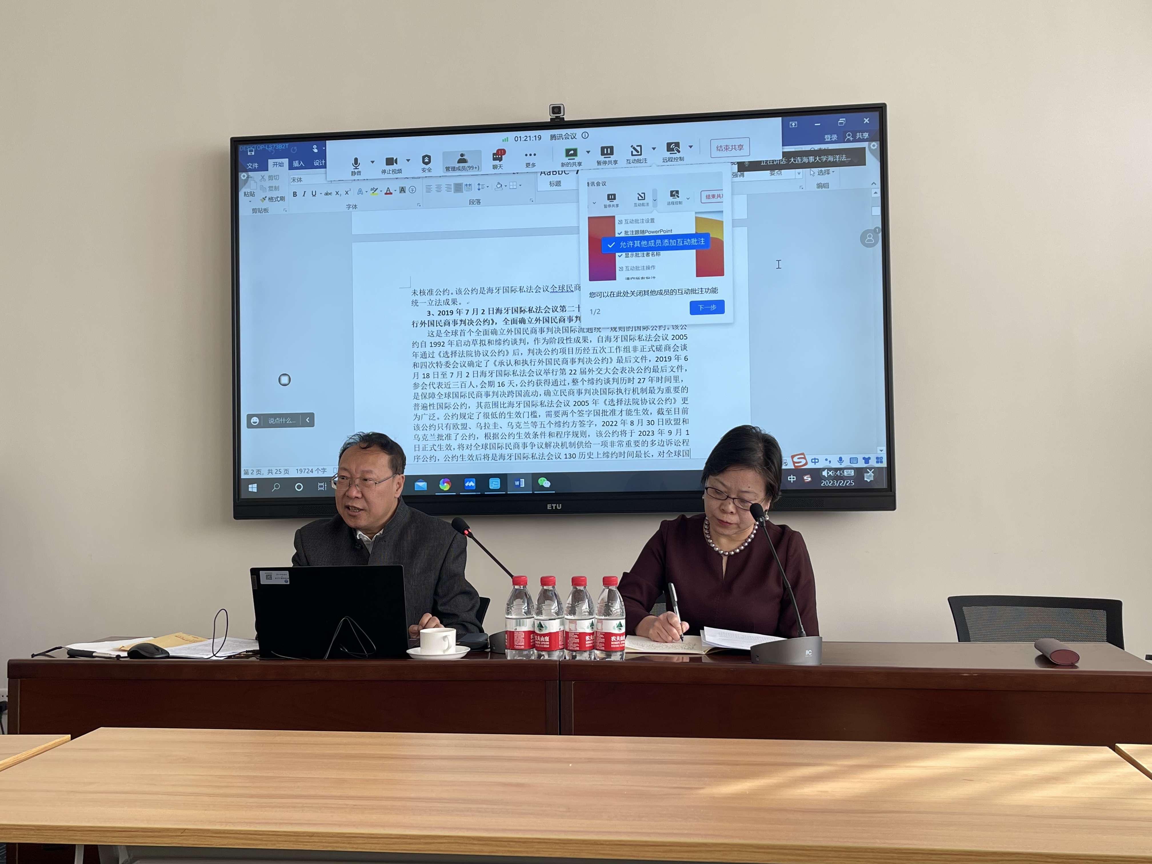 2023年2月25日,大连海事大学海洋法治与文化研究院在中伦文德报告厅举行专题报告会,永利国际法研究中心主任王瀚教授应邀做“国际商事争端解决机制的新进展”的主题讲座,大连海事大学法学院王淑敏教授主持讲座,通过现场交流和视频会议结合的方式,百余位博士、硕士研究生和教师参与讲座交流。