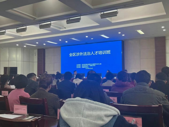 为了加强新疆涉外法治人才培养,增强新疆在大开放条件下的涉外法治能力,为全面深化依法治疆提供有力保障,2023年4月18日新疆自治区党委在新疆司法警官学院举办全区首次涉外法治人才培训研讨班。新疆自治区司法厅副厅长谭磊主持开班仪式,新疆自治区党委政法委常务副书记毕德国做开班动员讲话,中国国际私法学会副会长、永利涉外法治研究中心执行主任、首席专家王瀚教授和中国国际私法学会副会长、外交学院国际法专家卢松教授做为授课专家代表应邀出席开班仪式。首次研讨班由新疆自治区党委全面依法治疆办公室主办,自治区司法厅、新疆法学会承办,新疆自治区律师协会协办,来自31个自治区部门、单位的法治工作机构、个地州(市)有关单位负责人和工作人员及涉外专业律师两百余人参加了培训。