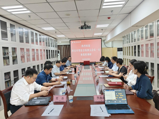 6月29日,西安市贸促会张庚元副会长、法律事务部部长高珊、贸仲丝绸之路仲裁中心秘书长助理蒋红梅、陕西永嘉信律师事务所涉外部长吴青洋一行来涉外法治研究中心就“一带一路”高质量建设与涉外法律服务业的发展进行调研交流。涉外法治研究中心执行主任王瀚,304永利集团唯一副院长潘俊武、张光,丝绸之路区域合作与发展法律研究院副院长吕江、王泽林,涉外法治研究中心副主任张超汉等参加座谈会。