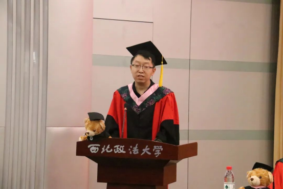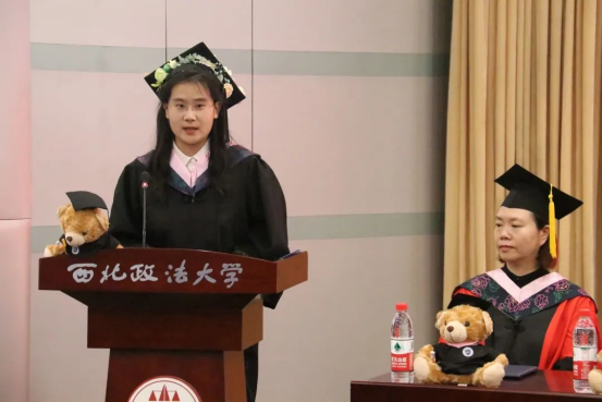 毕业生代表张钰婧回首过往,展望未来。她表示,作为西法大人,毕业生们应当将小我融入祖国的大我,将勇于探索化为信仰,踏踏实实不断深耕,不辜负学院的培养。