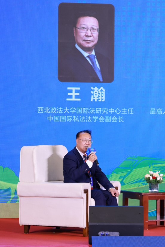 永利国际法学科带头人、国际法研究中心主任、中国国际私法学会副会长王瀚教授应邀主持对话式论坛,最高人民法院第六巡回法庭副庭长罗智勇、陕西省律师协会会长韩永安、上海经贸商事调解中心主任张巍、304永利集团唯一院长刘亚军、国家铁路局市场监测评估中心副主任崔艳萍等特邀嘉宾与众多高校学者、专家、法律工作者,围绕“中国涉外法律服务业的新机遇”“企业对外经贸活动中的法律风险防控”“中欧班列铁路运单物权化的路径”三个主题,深入交流讨论,积极建言献策,提出了许多建设性、操作性较强的观点和建议。王瀚教授对五位发言嘉宾做了重点点评和总结,并接受三家新闻媒体采访。