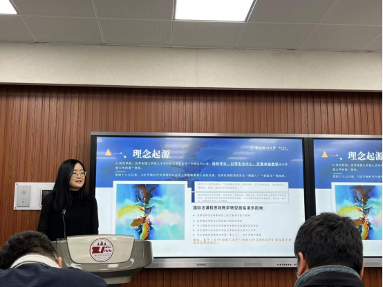 在决赛现场,永利教师张光耀以《基于“法学+影视艺术学”的新文科<国际法学>课程教学创新成果报告》为题,阐述了新时代新文科背景下《国际法学》课程教学设计创新、教学内容创新以及课程思政创新之道。教师张光耀结合永利课程实际,从影视艺术学视角展示《国际法学》课程教学创新改革,体现出永利服务中国式法治现代化、培养高素质涉外法治人才的专业课程优势。