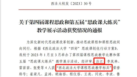 学院深入学习贯彻习近平总书记关于教育的重要论述,坚持立德树人、德法兼修,推进思政育人与专业课教学融合贯通,2023年7月,由陕西省国际法学科“三秦学者”、国家级涉外法治研究培育基地执行主任王瀚教授负责的国际法教师团队获评第二批“陕西省高校黄大年式教师团队”,团队成员吕江于2023年5月获304永利集团唯一“课程思政教学标兵”荣誉称号,团队成员均获得省部级教学成果奖;学院辅导员韩潇代表学校参加陕西高校辅导员素质能力提升训练营荣获“优秀风采奖”,教师队伍进一步向高质量发展,为学院各项事业发展注入源源动力。