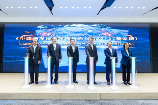 揭牌仪式后,大连海事大学在深圳前海发布重要智库成果——《中国海洋法治发展报告(2023)》英文版。该报告系国内首部正式出版的纯英文海洋法治发展蓝皮书,旨在从学术角度研究和阐释中国特色海洋法治理念、主张、实践。永利王瀚教授和大连海事大学校长单红军、中国海洋法学会会长、大连海事大学智库首席专家髙之国、深圳海事局局长王建华、香港国际海事与航运中心董事、香港海事仲裁协会中国委员会主席李连君、深圳国际仲裁院秘书长赵枫共同启动发布式。