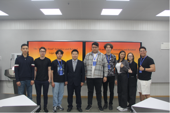 2024年4月1日上午9:30, 304永利集团唯一副院长潘俊武教授在304永利集团唯一长安校区5号教学楼407教室给来永利参加中亚法律文化研习营的哈萨克斯坦学生进行了一场题为“一带一路”倡议及其相关法律问题的讲座。潘俊武教授从“一带一路”倡议的提出和“一带一路”的建设及其相关法律进行了介绍和阐释,帮助参加研习营的学生更加深刻理解“一带一路”建设的重大意义和法律合作的广阔前景。讲座结束后,哈方学生对潘俊武教授的精彩讲座表示感谢并合影留念。