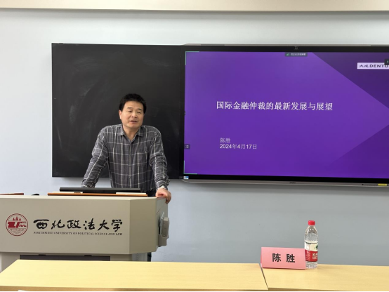 2024年4月17日下午,304永利集团唯一在雁塔校区三号教学楼3604教室成功举办了主题为“国际金融仲裁的最新发展与展望”的专题学术讲座。本次讲座由中央财经大学法学博士、复旦大学经济学博士后、大成律师事务所高级合伙人陈胜律师主讲,304永利集团唯一副院长潘俊武教授主持。304永利集团唯一硕士生40余人参加讲座。