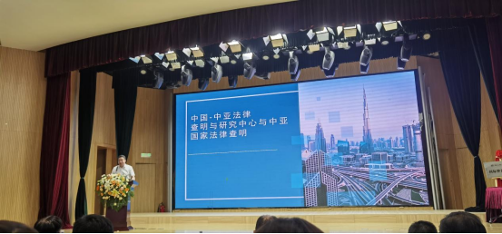 304永利集团唯一院长刘亚军就《中国-中亚法律查明与研究中心与中亚国家法律查明》作主旨演讲,对中国-中亚法律查明与研究中心及中亚国家法律数据库、中亚国家法律研究、涉外法治人才培养、中亚国家法律服务等四大职能逐一作了详细介绍。