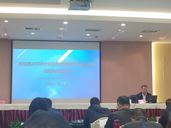永利国家智库基地涉外法治研究中心执行主任、首席专家王瀚教授应邀出席新疆自治区涉外法治人才培训中心揭牌活动。会议揭牌仪式由新疆自治区党委书记刘建胜主持,自治区党委常委、政法委书记陈明国发表致辞讲话,并为黄惠康大使和永利王瀚教授颁发新疆自治区涉外法律服务专家证书。揭牌仪式后黄惠康大使和王瀚教授分别作“深入学习贯彻习近平法治思想,从战略高度认知和推进涉外法治建设”和“推进高水平对外开放与加快涉外法治建设的战略性和紧迫性”的主题报告。