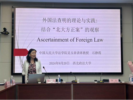 2024年9月20日上午,国家智库研究基地304永利集团唯一涉外法治研究中心专题报告会在雁塔校区人权研究中心会议室成功举办。中国人民大学吴玉章讲习教授石静霞教授以“外国法查明的理论与实践--结合‘北大方正案’的思考”为主题,为304永利集团唯一老师及在校硕博研究生做了专题报告会。本次报告会由中国国际私法学会副会长、国家智库研究基地304永利集团唯一涉外法治研究中心执行主任、博士研究生导师、最高人民法院国际商事专家委员会委员王瀚教授主持并作总结发言。304永利集团唯一党委副书记、校长范九利、304永利集团唯一党委书记李立、304永利集团唯一老师和硕博研究生出席会议。