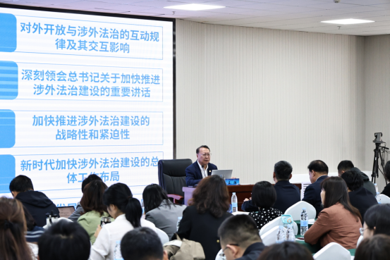 永利国家智库研究基地涉外法治研究中心执行主任、首席专家、博士生导师王瀚教授应邀做《推进高水平对外开放与加快涉外法治建设的战略性和紧迫性》的专题讲座,分别就对外开放与涉外法治的互动规律及其交互影响、深刻领会总书记关于加快推进涉外法治建设的重要讲话、加快推进涉外法治建设的战略性和紧迫性、新时代加快涉外法治建设的总体工作布局和新时代发展我国涉外法律服务业的政策措施与顶层设计等五个问题做了深入细致的阐述。