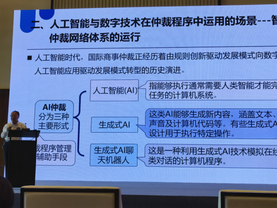 西安交通大学法学院副院长李万强教授主持主旨发言,永利王瀚教授、香港国际仲裁中心秘书长刘煦婷、西安仲裁委员会副主任兼西安仲裁院院长徐文新分别作主旨演讲。王瀚教授发表了“国际商事仲裁发展的未来趋势——人工智能与数字技术在仲裁程序中的应用与前景”的主题演讲,就“人工智能和数字技术在国际仲裁程序运用的政策导向”、“人工智能和数字技术在仲裁程序中运用的场景—仲裁网络体系的运行”和“人工智能和数字技术在仲裁程序中运用的趋势与风险控制”三个问题进行深入阐释。