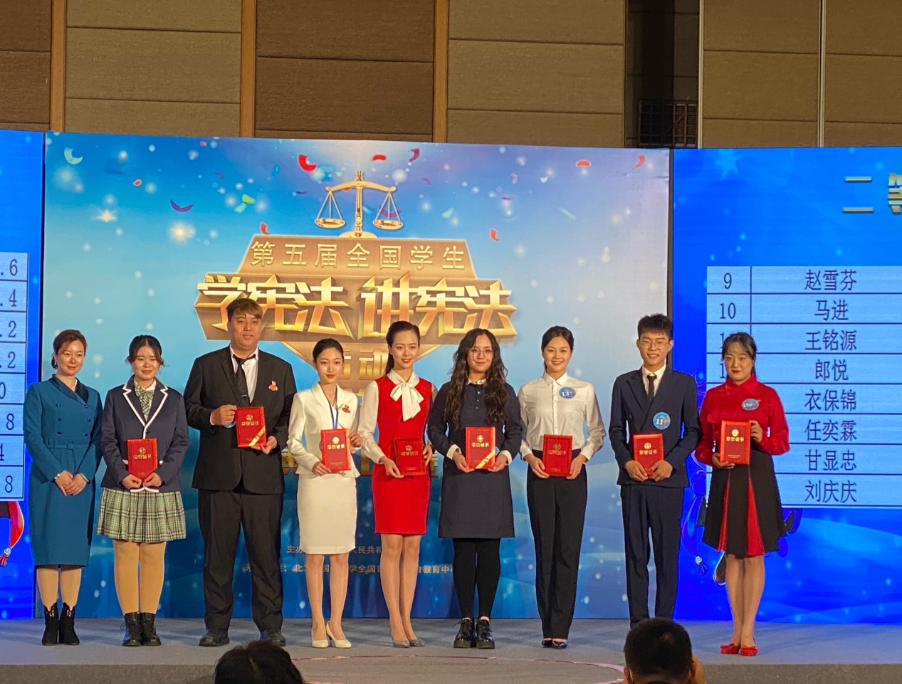 11月29日至12月3日,由教育部主办的第五届全国学生“学宪法、讲宪法”比赛在北京召开。来自全国34支代表队共263名选手齐聚一堂,大家以比赛的形式,讲述身边故事,普及宪法知识,弘扬宪法精神,树立宪法权威。304永利集团唯一2017级涉外班的任奕霖同学以陕西省高校组第一名身份,代表陕西赴京参加此次比赛。经过激烈角逐,任奕霖同学最终荣获“第五届全国学宪法、讲宪法比赛”高校组二等奖的优异成绩,为陕西争了光,为学校争了光。
