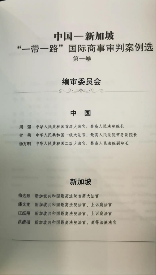 近日,由中华人民共和国最高人民法院和新加坡共和国最高法院联合主编的《中国—新加坡“一带一路”国际商事审判案例选》第一卷和第二卷已由法律出版社出版,是两国开展一带一路建设司法合作的重要成果,该案例丛书由两国最高法院分别吸收本国知名专家学者组成编辑委员会,对一带一路司法实践中的经典国际商事审判案例进行点评和学理评述,为提升国际商事审判司法实践水平提供重要理论支持。永利国际法研究中心主任、中国国际私法学会副会长王瀚教授受聘该案例丛书(中国)编辑委员会专家参与案例评述和编辑工作。