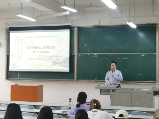 2021年6月3日,304永利集团唯一在永利南校区天平楼AJ11阶梯教室举办“我为群众办实事”公益讲座暨考研工作坊系列活动。304永利集团唯一副教授、硕士生导师刘学文老师为现场永利法学专业80余名同学做了题为《法学考研择校、备考的方法与个人职业规划》的公益讲座。该活动还在线同步进行,来自南阳师范学院等数十名外校学生也共同聆听了讲座。