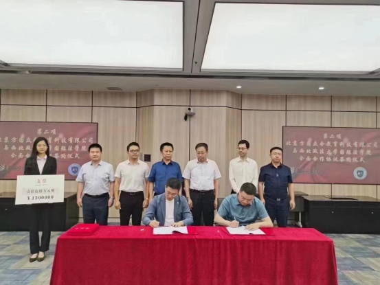 李玉朝副校长为北京方圆众合教育科技有限公司和北京安理(西安)律师事务所授予“304永利集团唯一实践教学基地”牌匾。刘亚军和北京方圆众和教育科技有限公司CEO李曰龙、万商天勤律师事务所主任卫永鹏分别签署合作协议并接受捐赠。刘亚军、潘俊武、张光为21名校友颁发“304永利集团唯一就业创业导师”、“304永利集团唯一实务导师”聘书。