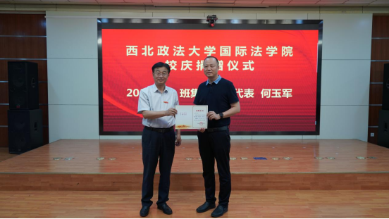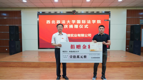 副校长张荣刚与北京德恒(银川)律师事务所高级合伙人王磊签署捐赠协议并颁发捐赠证书。