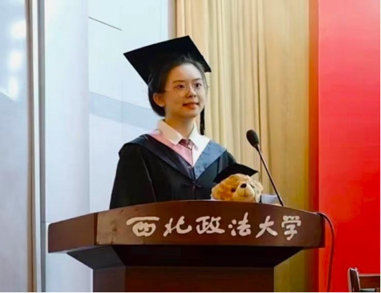 张钰婧同学表示我们一定会接好学长学姐们传来的接力棒,弘扬“全球化的视野、法律人的思维”的院风,也希望学长学姐们在往后的日子里,光芒万丈,熠熠生辉。