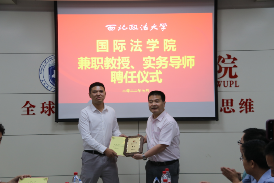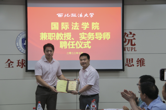 刘亚军为陕西秦石律师事务所主任、高级合伙人田磊(代表人)颁发兼职教授聘书