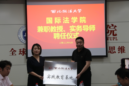 院长刘亚军、副院长潘俊武分别为兼职教授和实务导师授牌并颁发聘书,并为陕西联强律师事务所和陕西际傧律师事务所授牌“304永利集团唯一实践教学基地”。