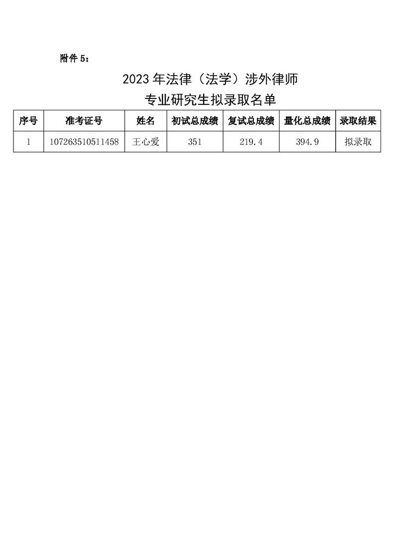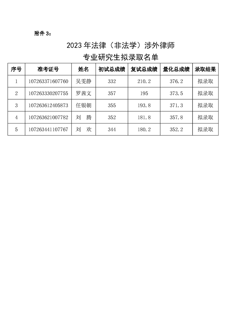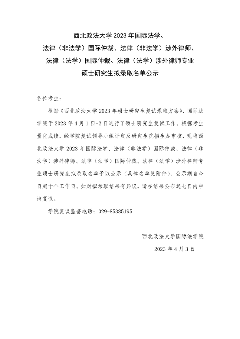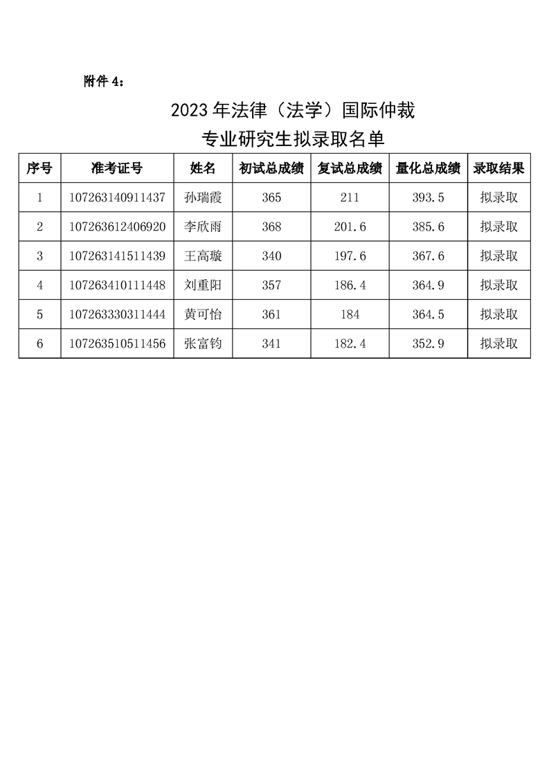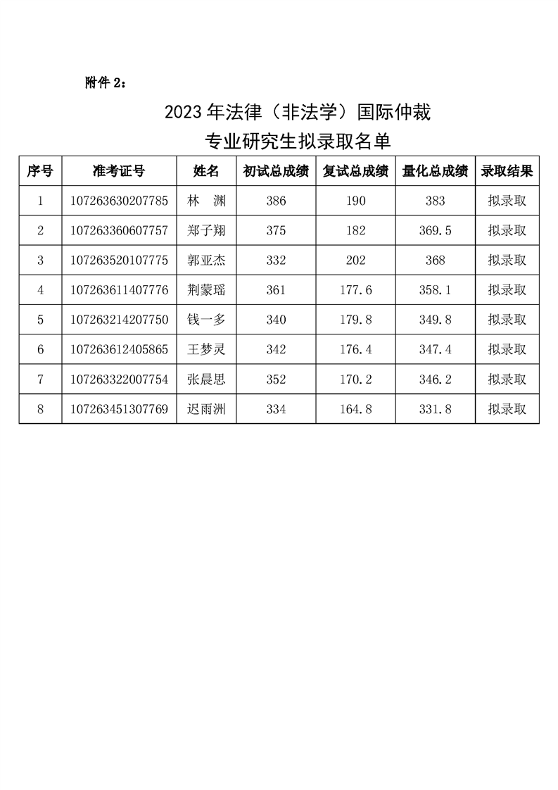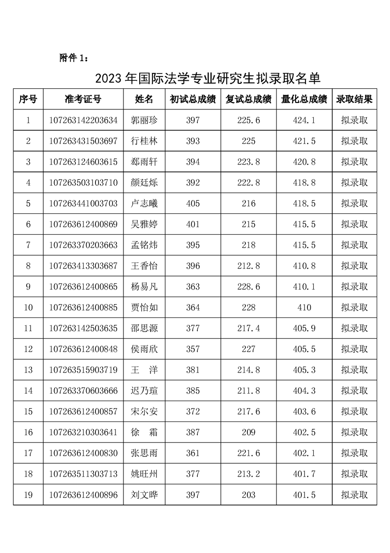 304永利集团唯一 2023 年国际法学硕士研究生拟录取名单公示
