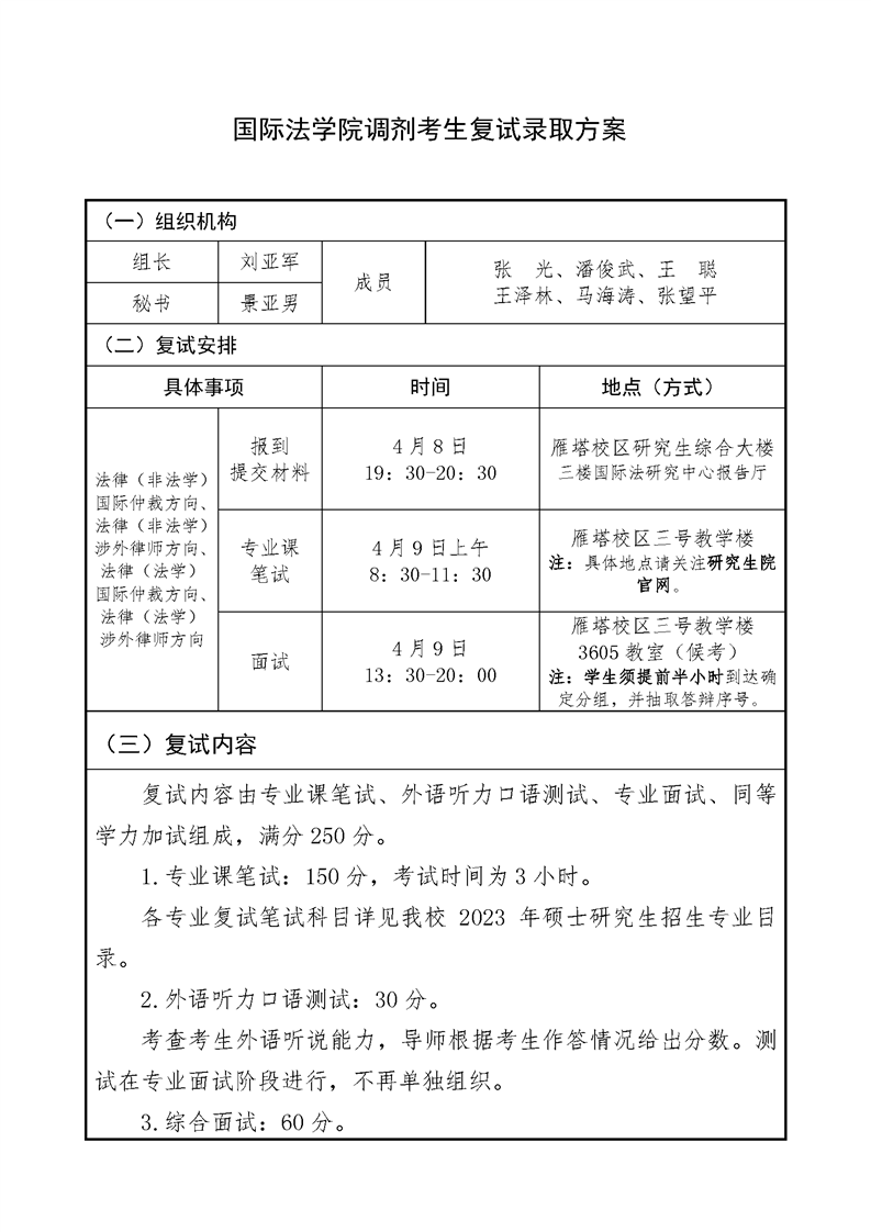 304永利集团唯一2023年法律硕士(国际仲裁、涉外律师)调剂拟录取名单公示
