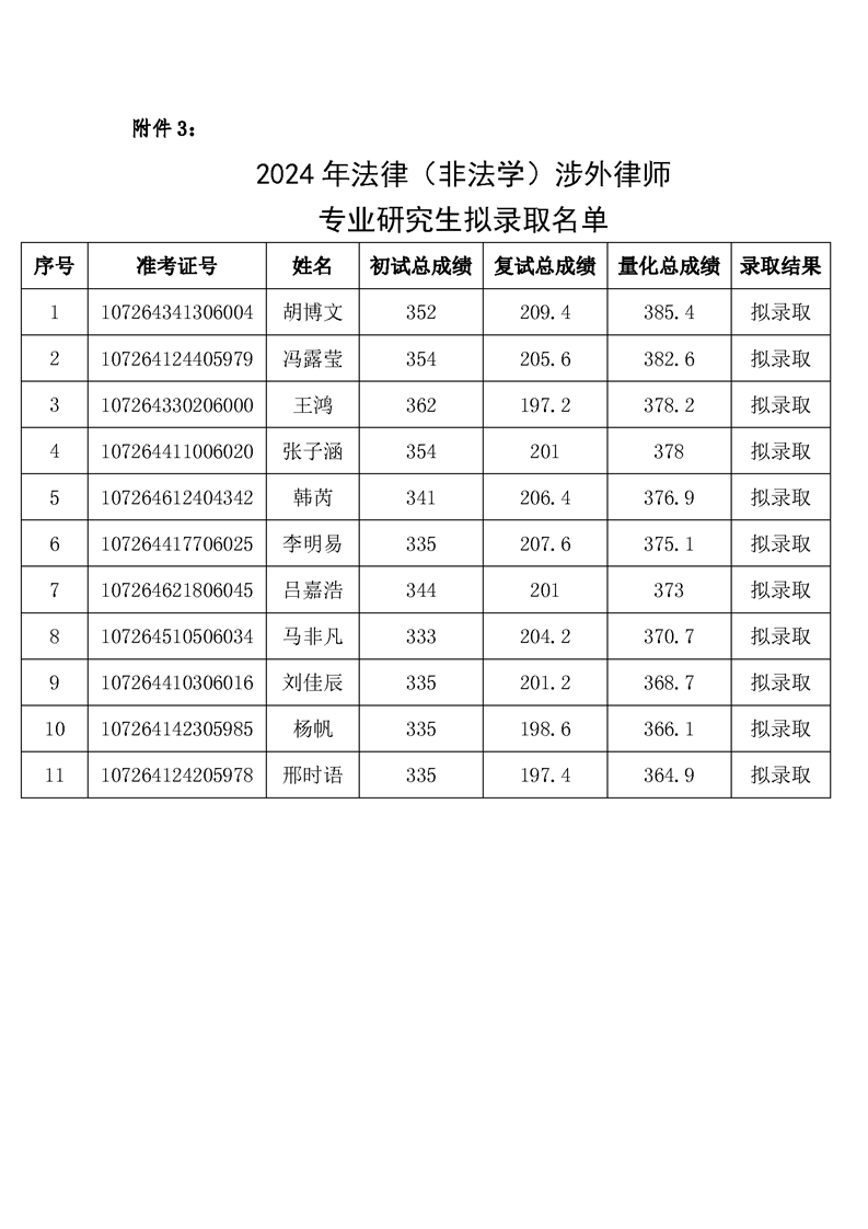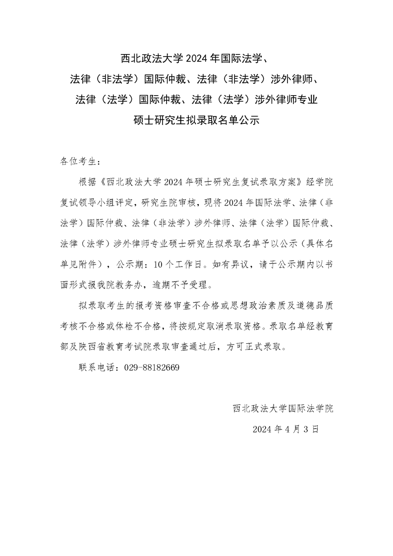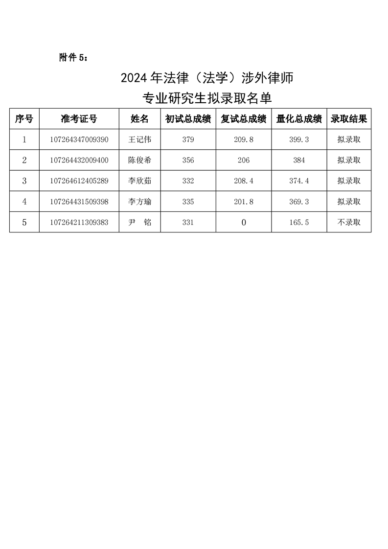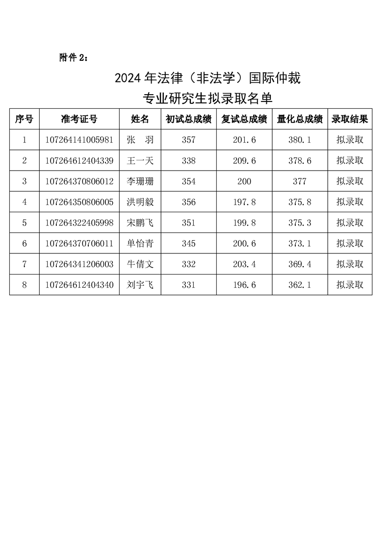 2024年304永利集团唯一硕士研究生拟录取公示名单