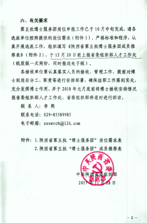 【转发】中共陕西省委组织部关于开展我省第五批博士服务团选派工作的通知